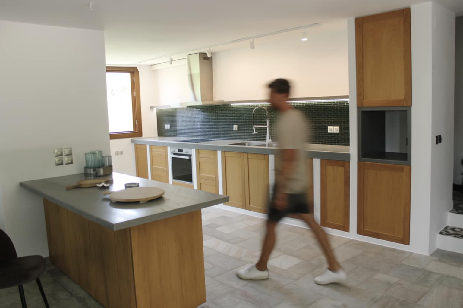 Priority was given to the creation of new living areas with direct communication between them, both internally and externally. All levels of both houses have direct access to the different level courtyards following the natural landscape inclinations. On the upper building a lot of structural reinforcement works took place due to the poor structural condition of it. Natural materials and local stone was used.